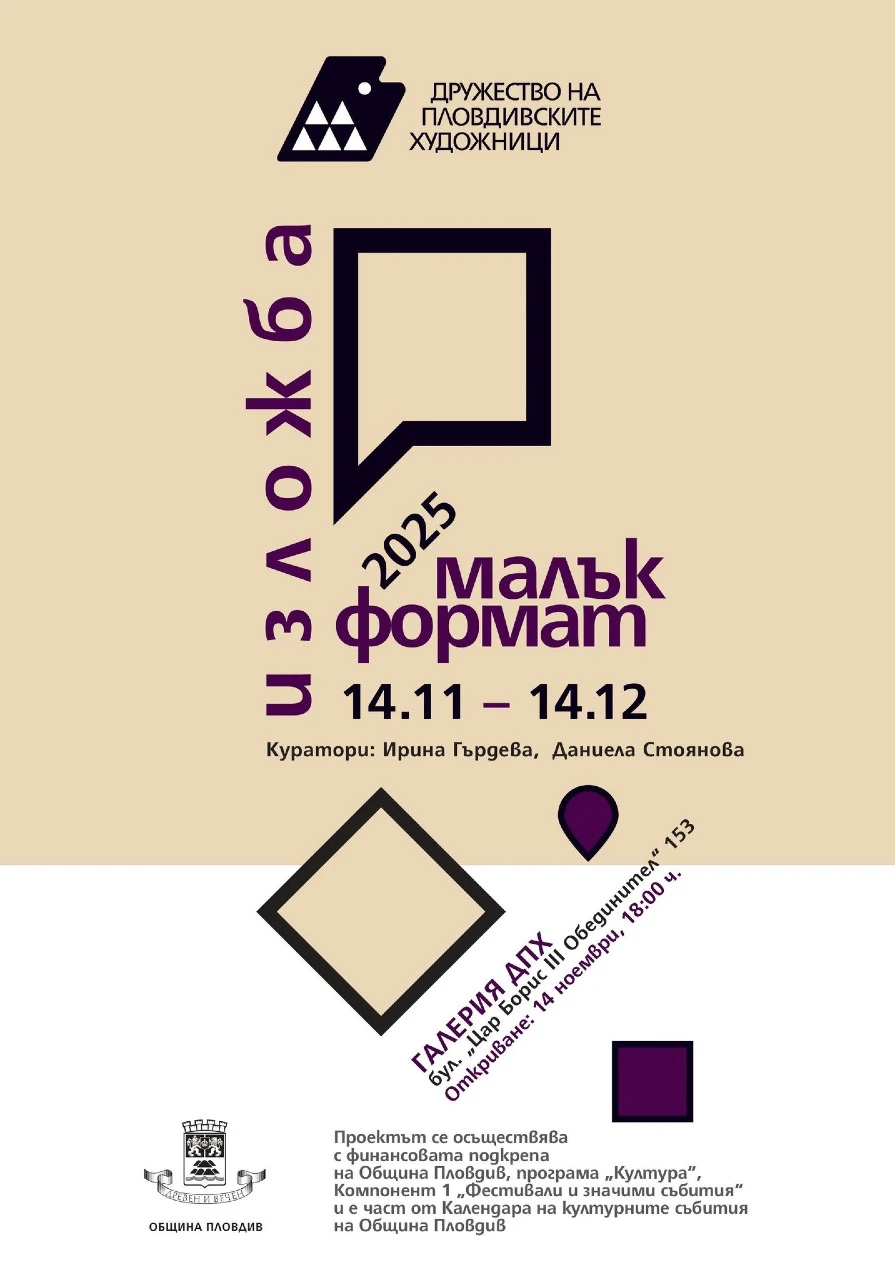 На 14 ноември в присъствието на много гости, творци и приятели на изкуството, в Галерия “ДПХ” на бул. “Цар Борис III Обединител” 153, Пловдив, беше открита изложбата “Малък формат” 2025 г. Събитието се осъществява с финансовата подкрепа на Община Пловдив, програма „Култура“, Компонент 1 „Фестивали и значими събития" и е част от Календара на културните събития на Община Пловдив. Изложбата ще продължи до 14 декември 2025 г.